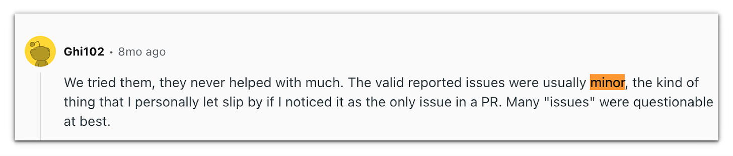On the other hand, it can raise false alarms: some developers report that many “issues” flagged by AI were questionable or minor to the point of not truly needing a fix.