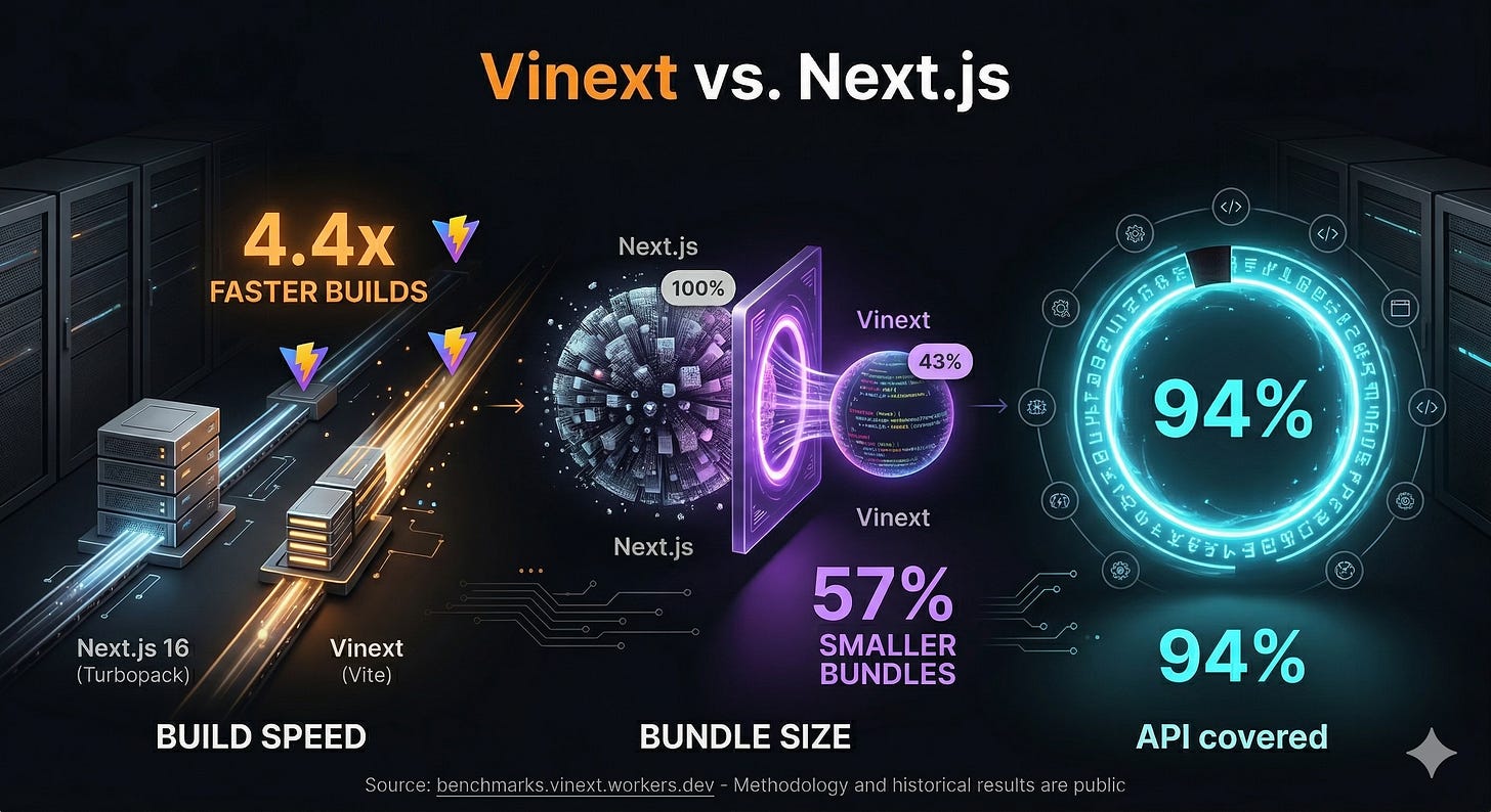 They called it vinext and claim the builds are 4x faster, the bundles are 57% smaller, and it covers 94% of the Next.js API.