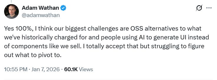 This doesn’t diminish the quality of Tailwind’s offerings; it rather highlights how AI has altered the perceived value of static design assets, forcing companies building developer-focused products (especially OSS) to rethink how to measure true growth and how to monetize their products in an AI-first development ecosystem.